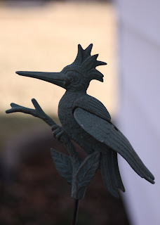 While I was playing around with the camera in the yard, I did manage to get a great frame-filling clear shot of a bird...albeit a stationary metal bird. However, it is a start!